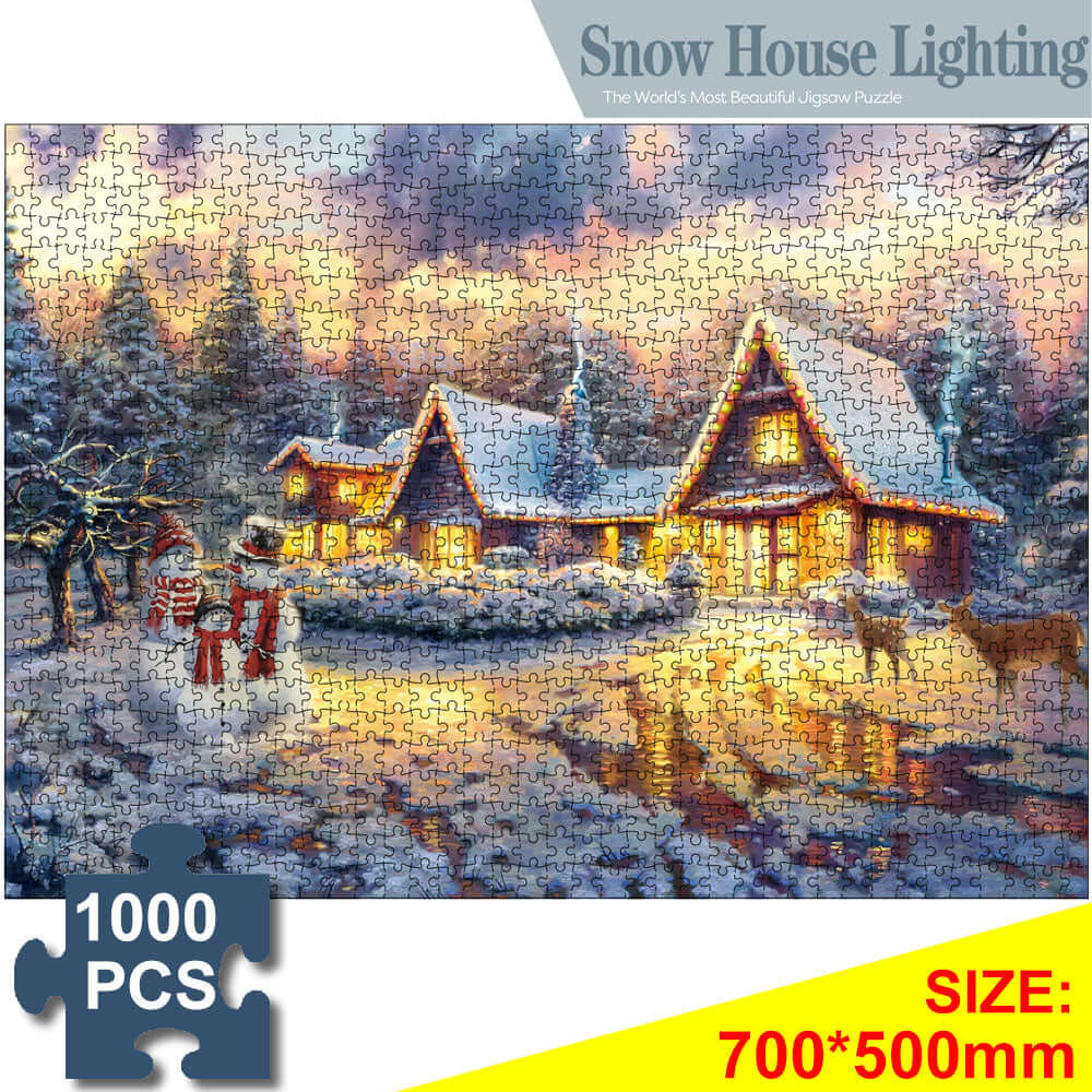 - Boxed 1000-Piece Snow House Lighting Jigsaw Puzzle.