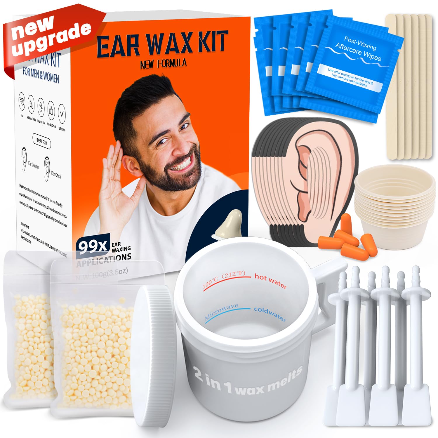 99 Pcs Ear Hair Removal For Men, Multifunction Nose Wax Kit & Ear Hair Waxing Kit, 100g Wax, 20 Wooden Sticks, 10 Applicators, 2 In 1 Wax Melts| New Super Face Ear Canals Hair Remover For Women