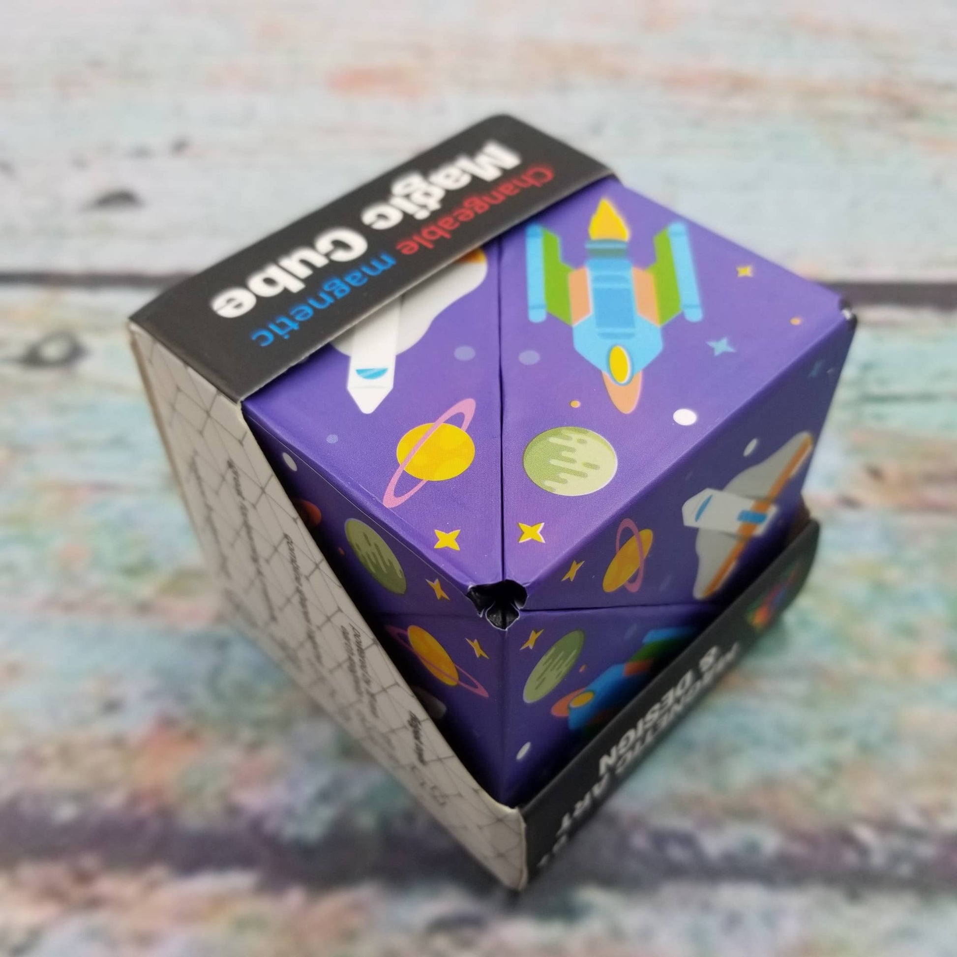 Size:6.5 *6.5 CM . Weight: 100G Material: plastic Astronaut Infinity Magnetic Cube Sensory Fidget Toy which makes the two perfectly integrated, compact and portable, can meet the pressure relief requirements in a variety of scenarios, and can be played anytime and anywhere.