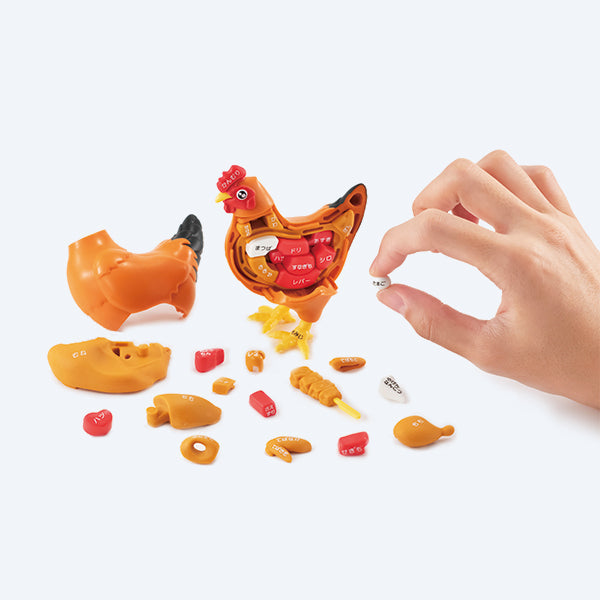 This chicken puzzle is the perfect combination of fun and learning. The colorful body parts snap together to form a feathery friend, teaching Japanese words for anatomy while engaging in exciting playtime. Perfect for the sophisticated mind. The Kaitai Chicken Puzzle, learn all the different edible parts of pork! 38 puzzle pieces assemble to recreate a cute chicken. Please note the Puzzle is plastic and can not be eaten!