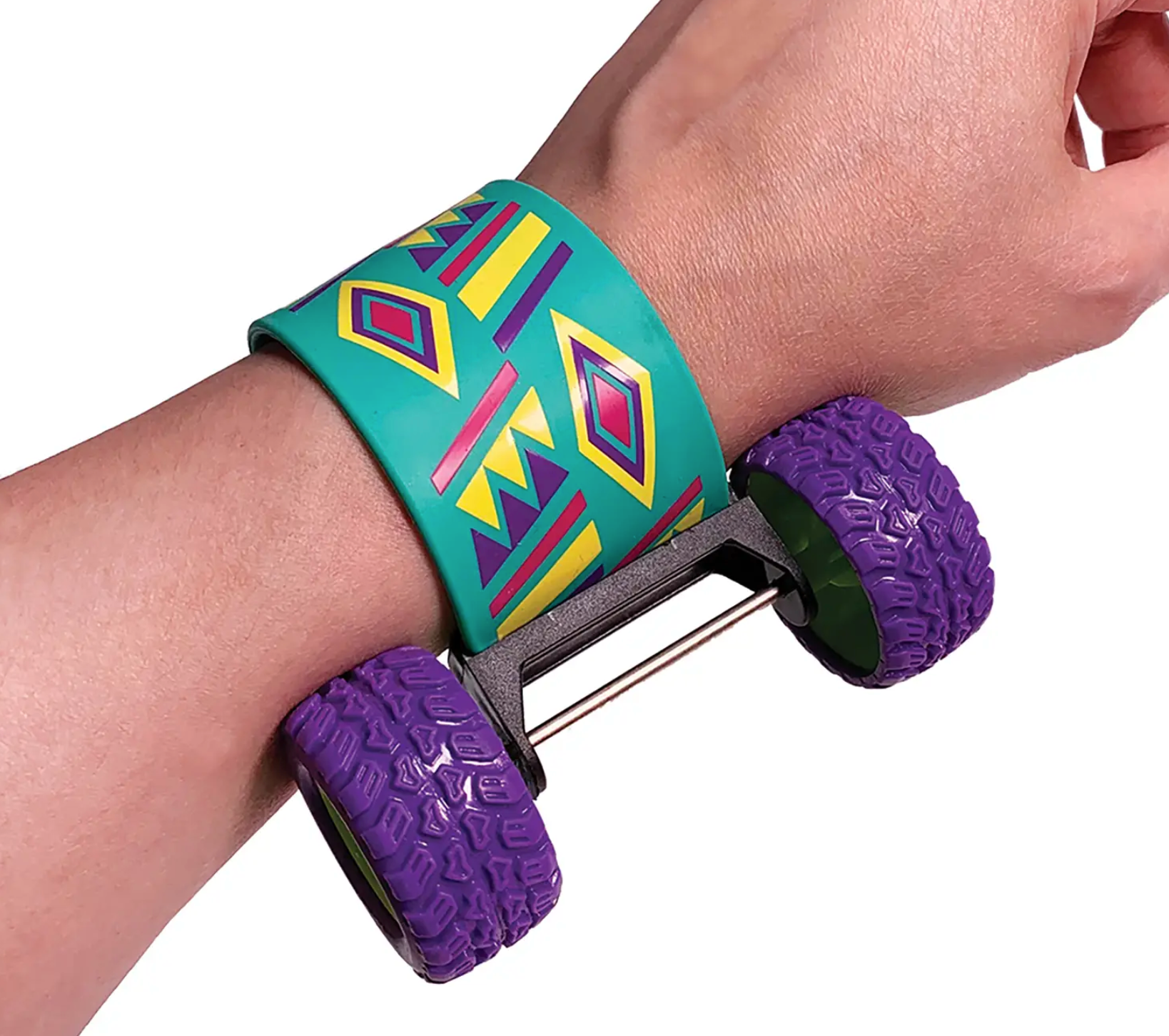 Wind it up, and watch it go! Pull this toy skateboard backwards when on the floor, and watch it fly forward on it's own! Create a fun on-the-go accessory but slapping this toy onto your ankle or wrist! Available in 4 vibrantly RAD patterns.
