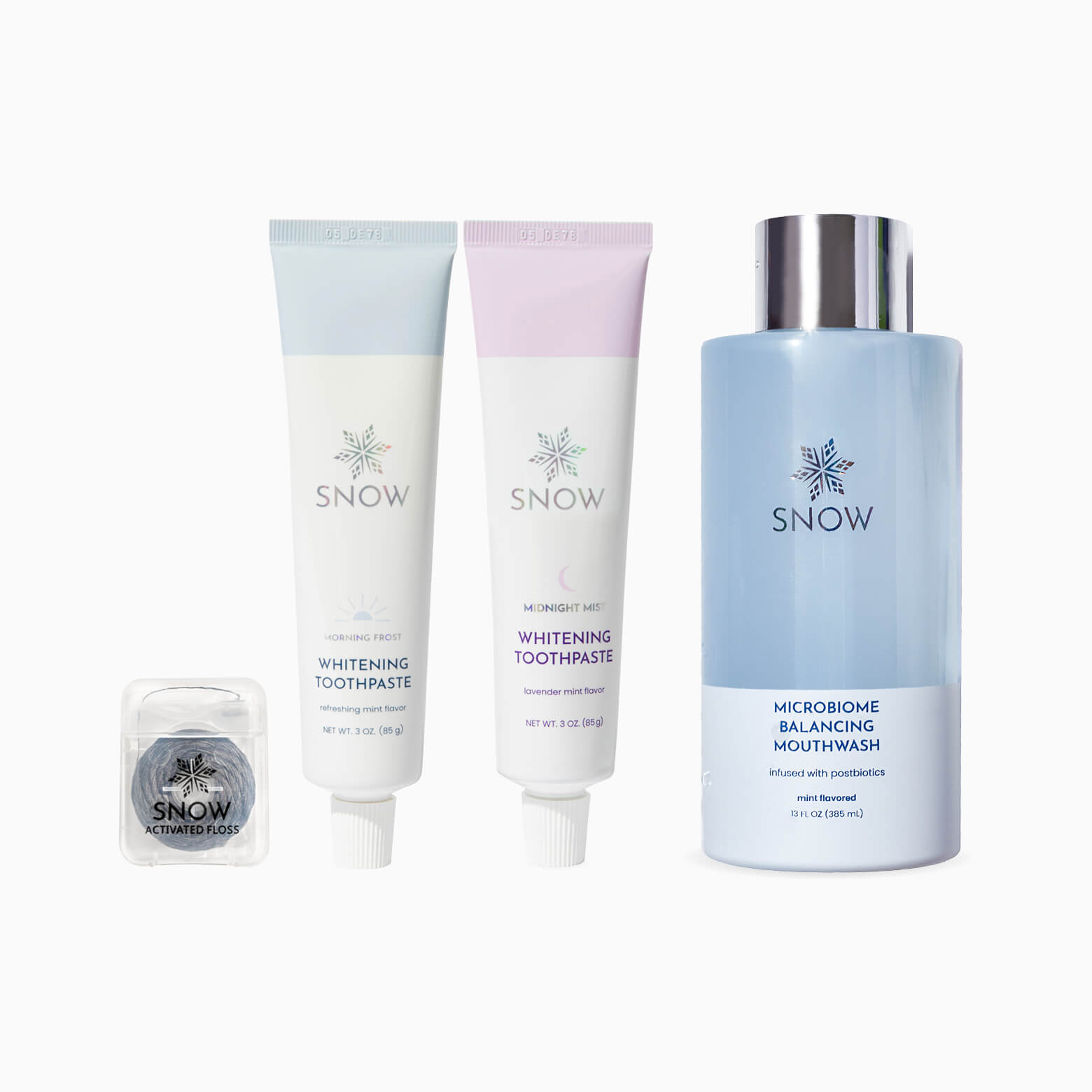 We've got your oral routine covered with our better-for-you whitening toothpaste, postbiotic mouthwash that kills bad breath and keeps gums healthy, and our activated charcoal floss, which helps clean and whiten between each tooth.