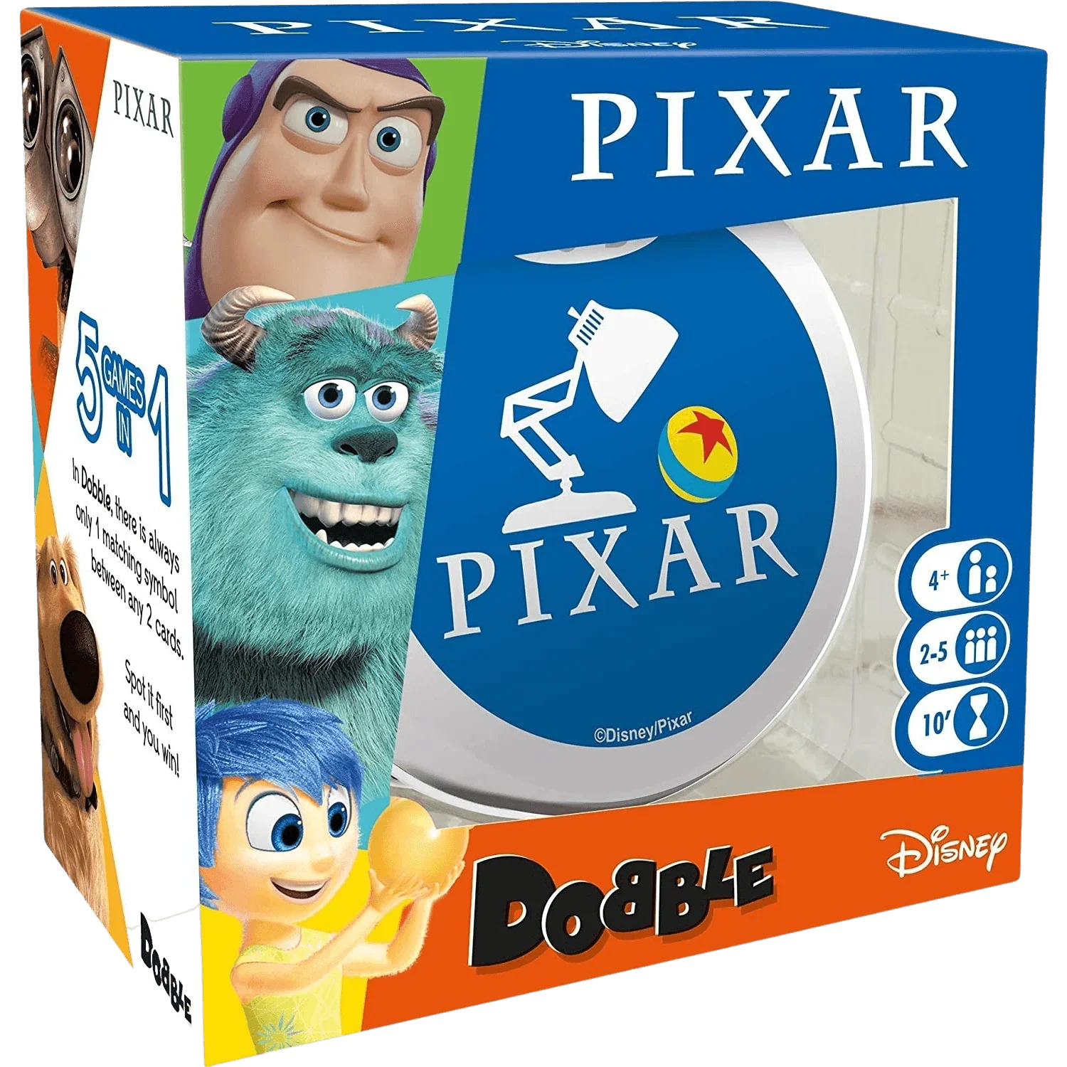Your favourite characters from the vibrant worlds of Pixar come to life in this special edition of the smash-hit game of speedy observation! Featuring familiar faces from Toy Story, the Incredibles, Finding Nemo and many more classic films; will you be the first to spot the single matching image between any two cards?