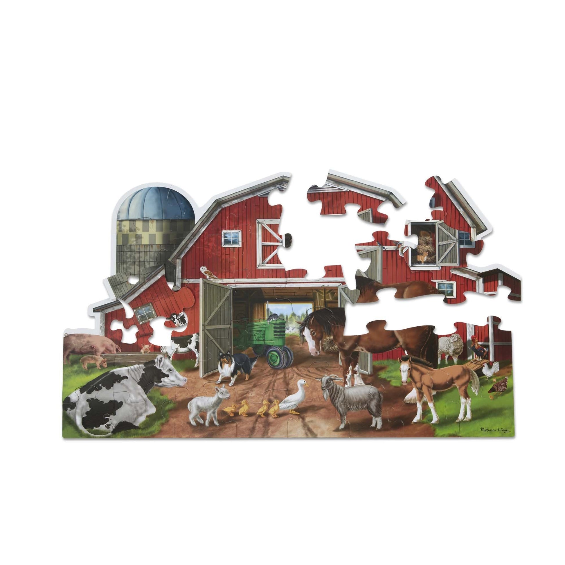Who can build the big red barn? A classic tractor peeks from behind the barn door, and animals graze and gather in the barnyard in this three-feet-wide shaped floor puzzle. The 32 oversize pieces are great for children of all ages--from preschoolers ju