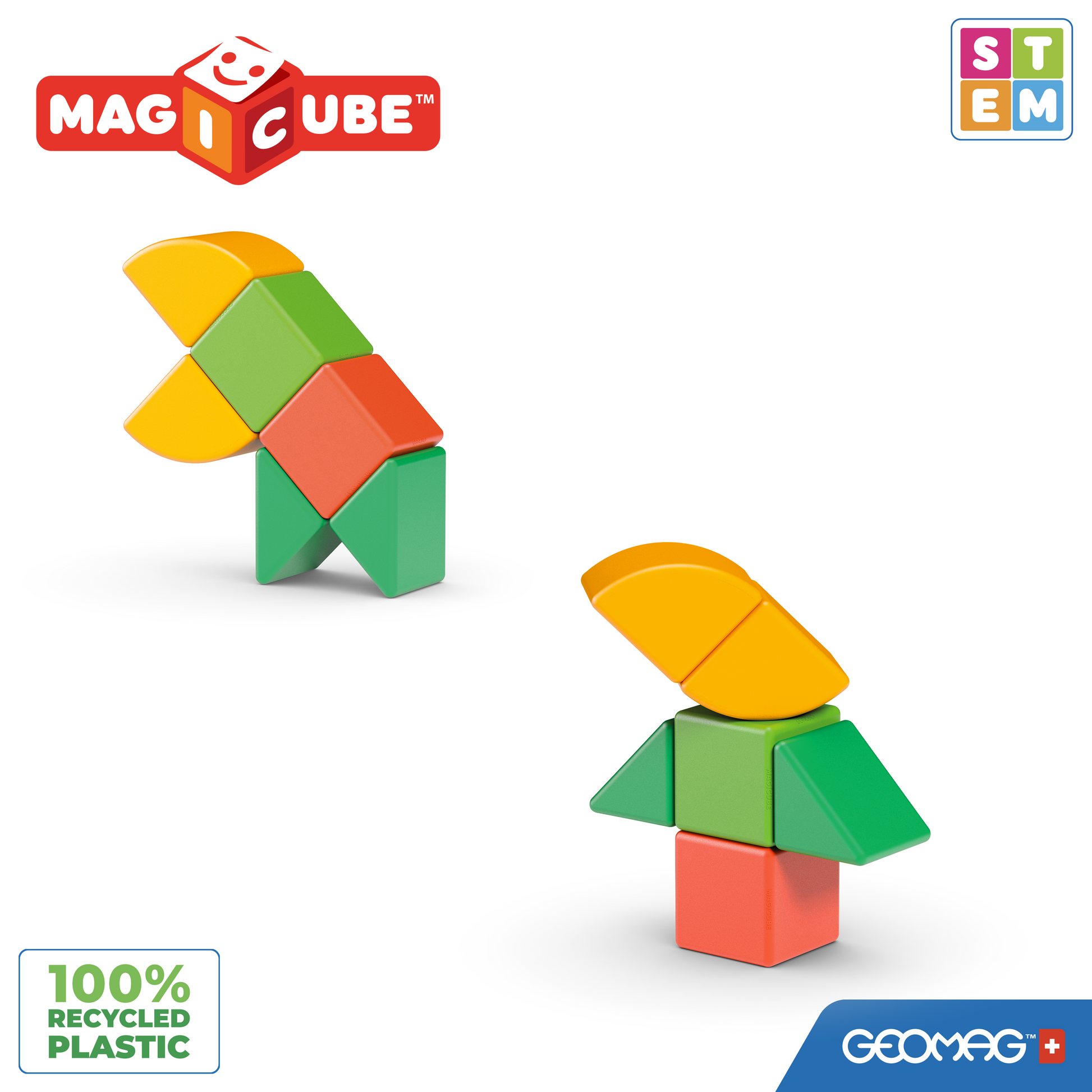 Made with 100% recycled plastic, Magicube Shapes magnetic building will allow your toddler to build different shapes, color combinations and 3D structures using Geomag Magicubes that are uniquely designed to connect on all sides. Includes four block shapes allowing toddlers to build a large assortment of construction projects! Early STEM.org authenticated Magicubes help in the development of creativity, fine motor skills in addition to stimulating imaginative play and curiosity through the science of magnetic construction.
