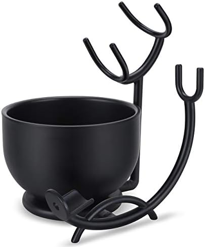 PROFESSIONAL SHAVING HOLDER - The 2-in-1 antler shaped stand can place the whole shaving kit. Suitable for traditional straight razor or long handle safety razor, nylon or badger hair brush. Make your counter clean and tidy, not occupy space.
