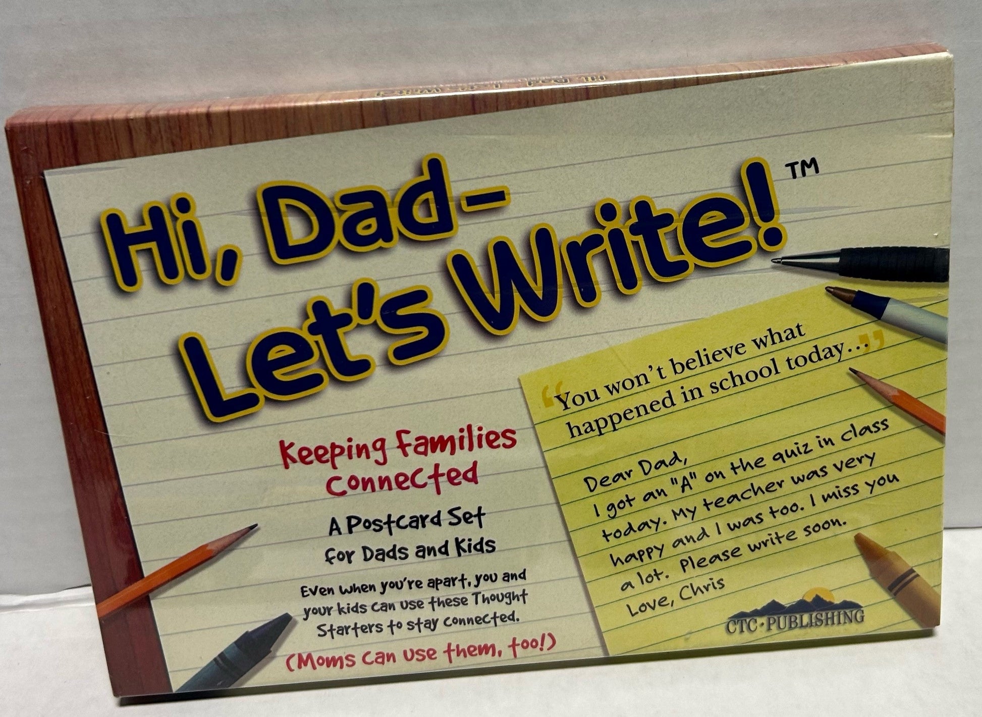Hi Dad! Let's Write Postcards. Keep dads (and moms) connected to their children even when they are apart. This special postcard set contains two packs of 25 postcards, one for dads to send to their kids and one for kids to send their dads. Each postcard is pre-printed with a "thought-starter" to help the writer initiate communication.