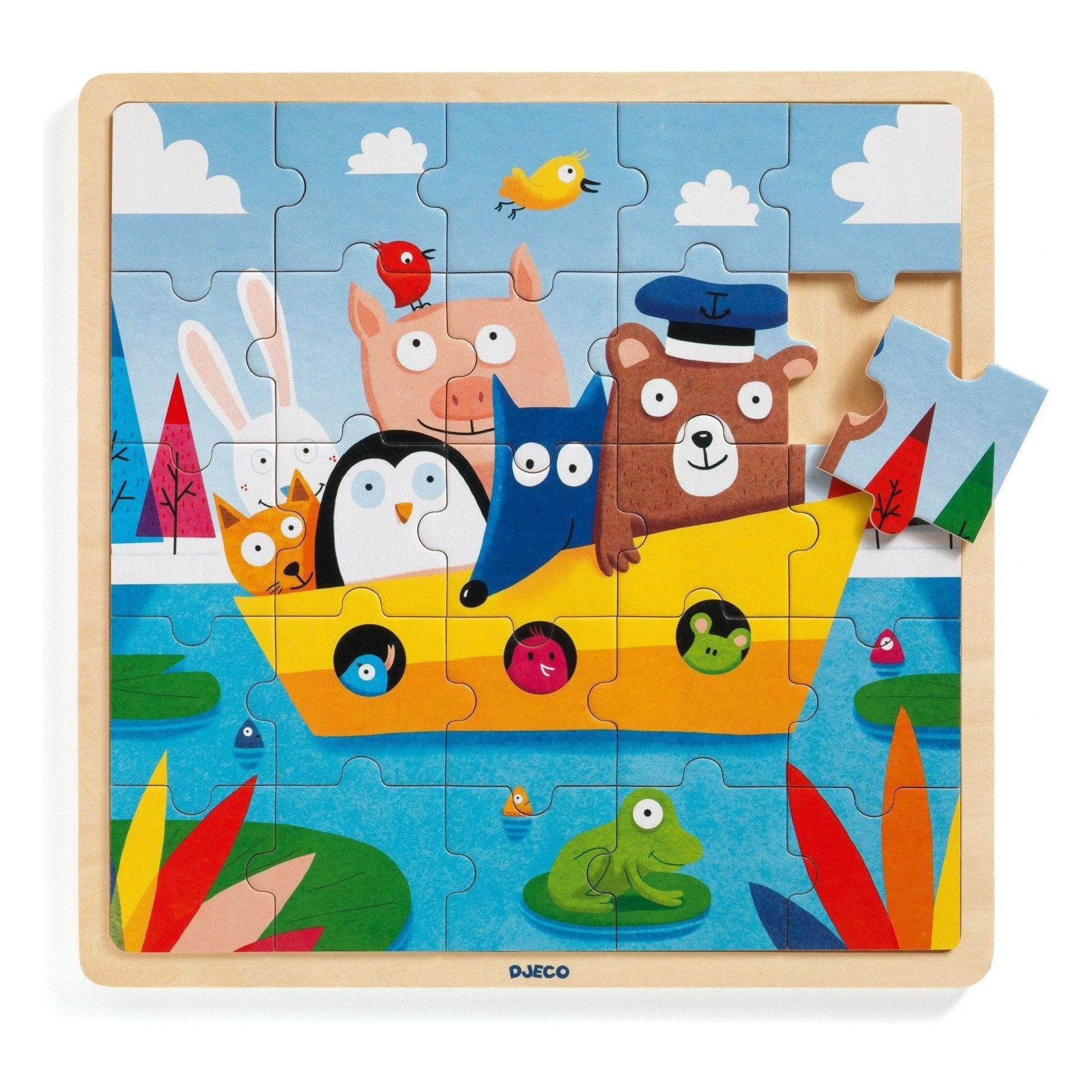 Featuring a boat full of adorable animals, this fun-to-assemble puzzle is a delight for your little one to put together. The wooden frame helps kids slot the pieces in correctly.