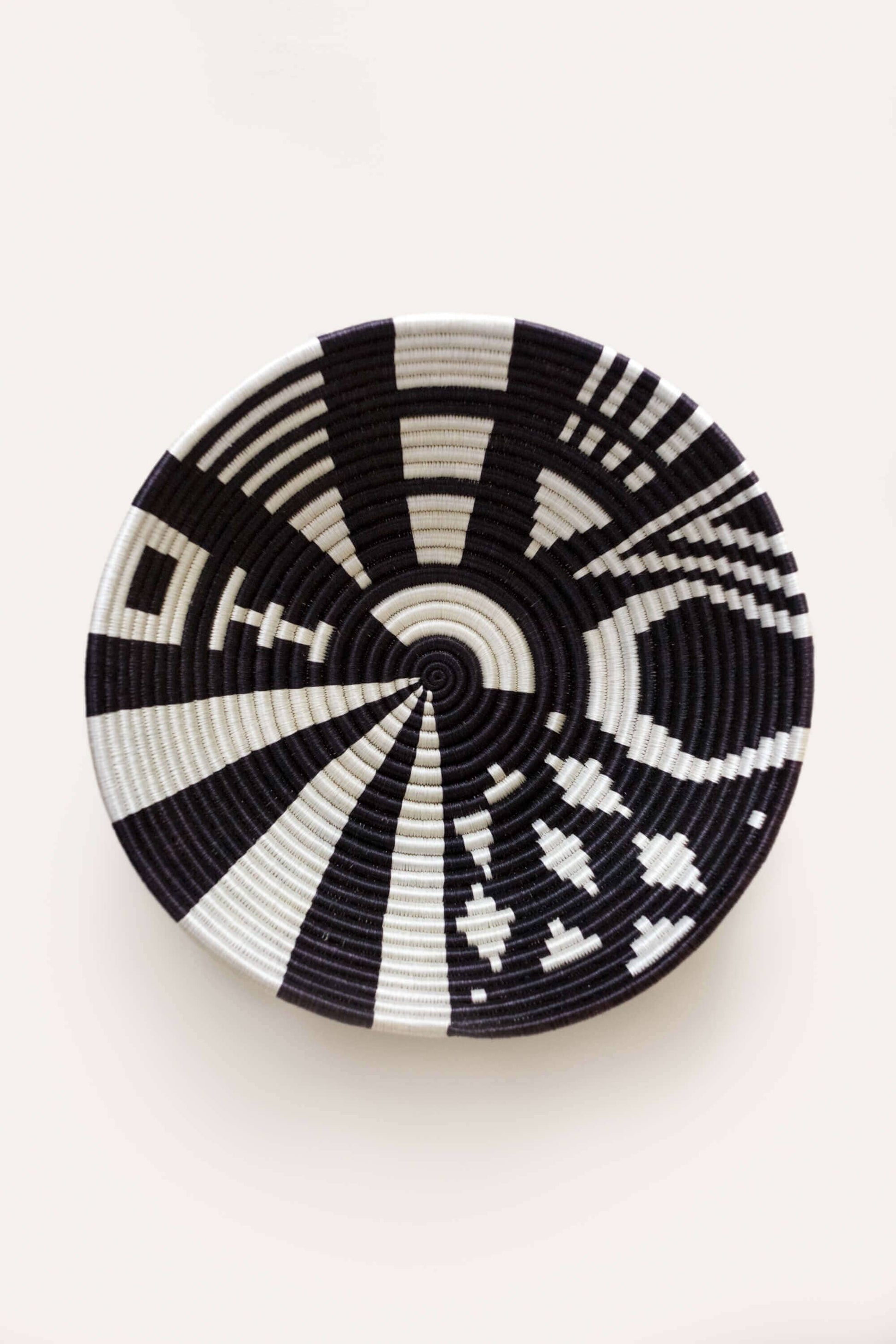 The Black and White Geo Plateau Basket is the ideal gift and the perfect shape and size to be used as a fruit basket, hung in a cluster on a gallery wall, or simply placed as an accent piece in your favorite nook around the house or office.