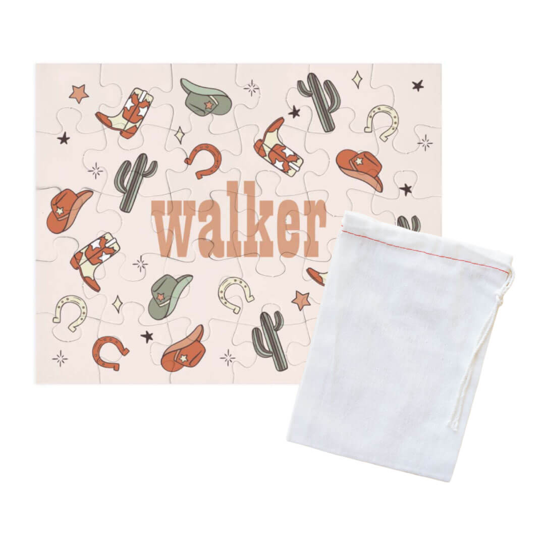 Let your child become the hero of their very own Wild West adventure with this personalized puzzle! Crafted from durable cardboard, this puzzle guarantees hours of entertainment that can be enjoyed over and over again. Watch your little one's mind go to work as they explore the wonders of this frontier-inspired puzzle!