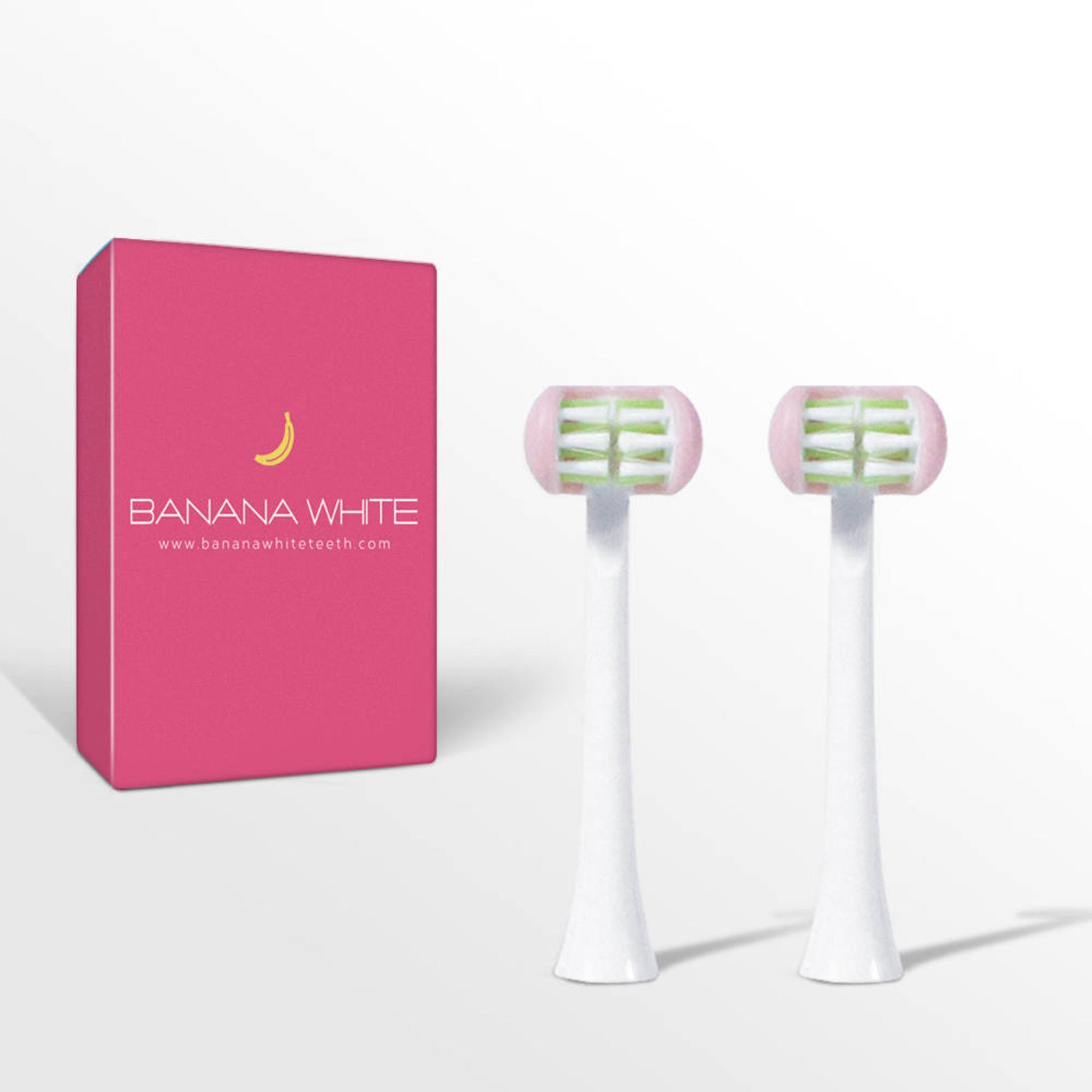 These pink replacement heads are only compatible with the banana white kids toothbrush. Each head has three brush heads to ensure your child is reaching all areas of their teeth while brushing. (2 pack)