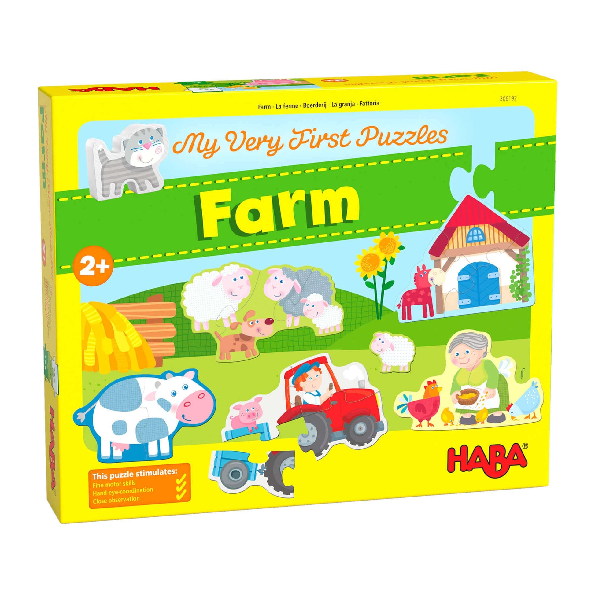 With a cute farm motif and large pieces for small hands, this is the perfect first puzzle for your child. This set includes a double-sided wooden figure and tiles for creative play and matching and 5 farm themed puzzles with 2, 3 or 4 pieces.