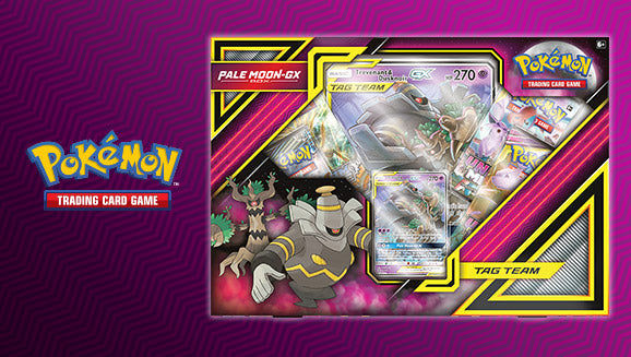 With crooked claws and glowing eyes, the TAG TEAM of Trevenant & Dusknoir-GX knows its way around a haunted forest! Celebrate this Pokémon pairing with the Pokémon TCG: Pale Moon-GX Box, featuring a fantastic oversize card featuring Trevenant & Dusknoir-GX, plus a special foil promo card. In addition, this box brings treats and treasures to your collection with 4 Pokémon TCG booster packs! Explore the spooky side of Pokémon with the Pale Moon-GX Box!