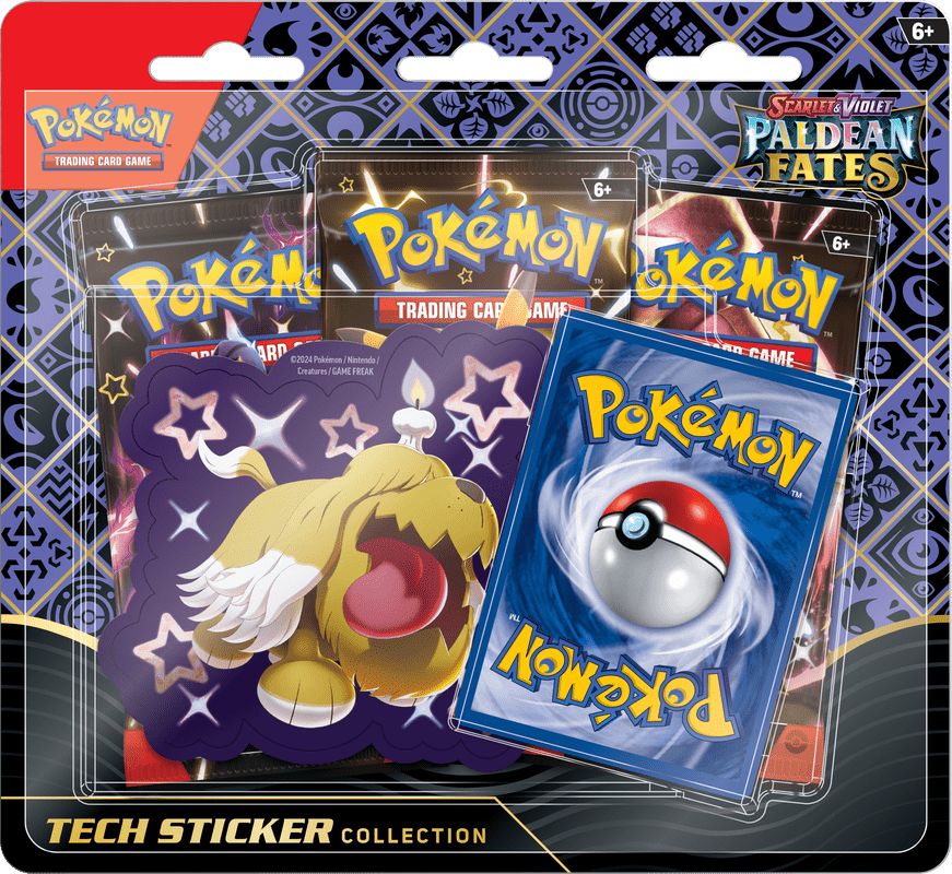 The Pokémon TCG: Scarlet & Violet—Paldean Fates Tech Sticker Collection includes: