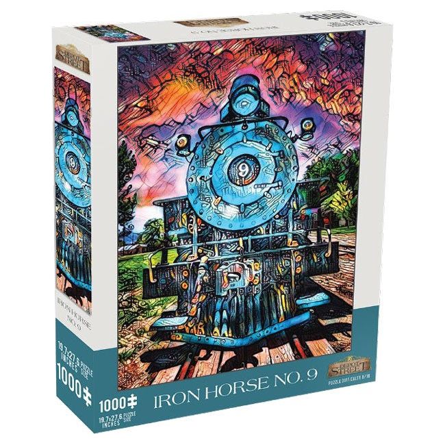 Featured in the famous Hollywood film “3 Godfathers” starring John Wayne, Southern Pacific #9 was originally built for the Nevada-California-Oregon Railway in 1909. It was a common sight thundering across the countryside in the high deserts of Nevada and California. Nicknamed “The Slim Princess,” it was the last locomotive to operate on the old narrow gauge line before its retirement and subsequent preservation. See this unique piece of American railroad history in a whole new way as a colorful, stylized 1,000-piece jigsaw puzzle.