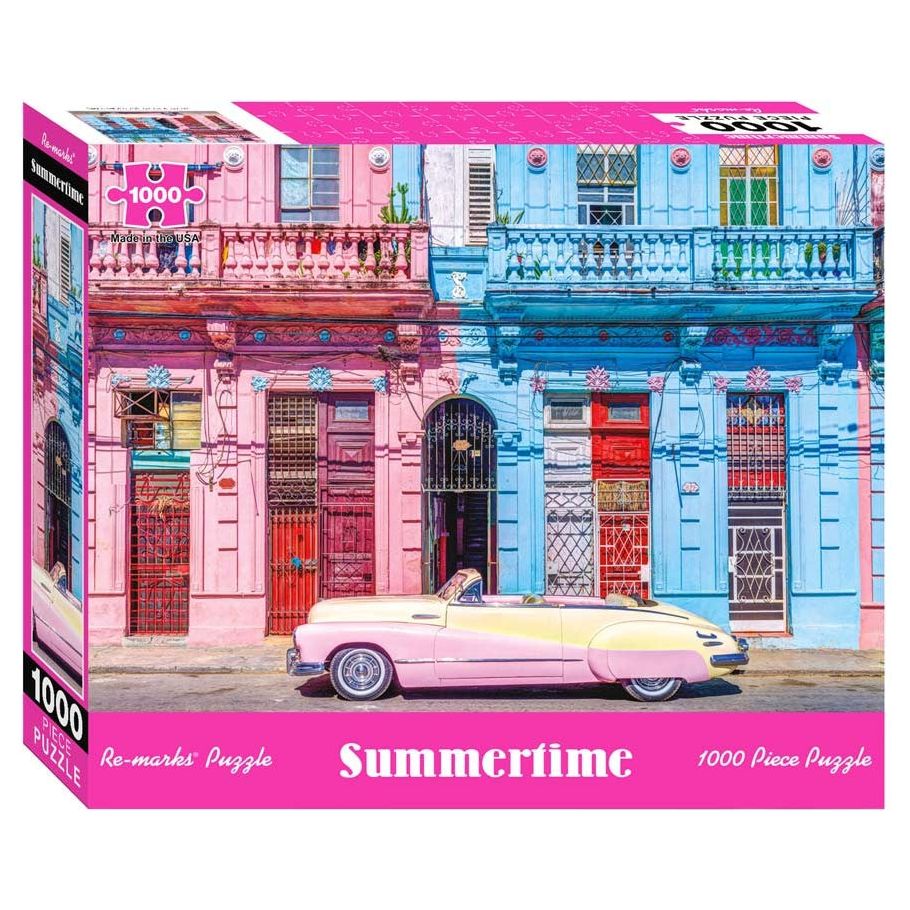 Enjoy the warm weather and colors of summer in this 1000-piece puzzle that captures two unique pastel buildings and a classic car all bathed in the sun of a beautiful summer afternoon. Perfect to put together in an air-conditioned home during the hot summer days, or as you wait for the sun to return during the winter months.