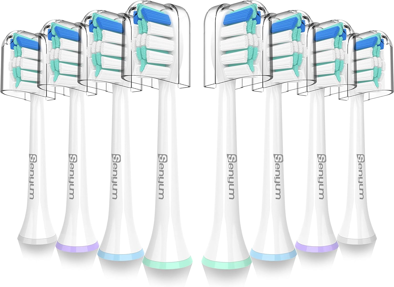 Replacement Heads for Philips Sonicare - Replacement Brush Head Compatible with Sonicare Electric Toothbrush – Not Too Hard or Soft - Awesome Design from Senyum - 8 Packs (Blue and White)