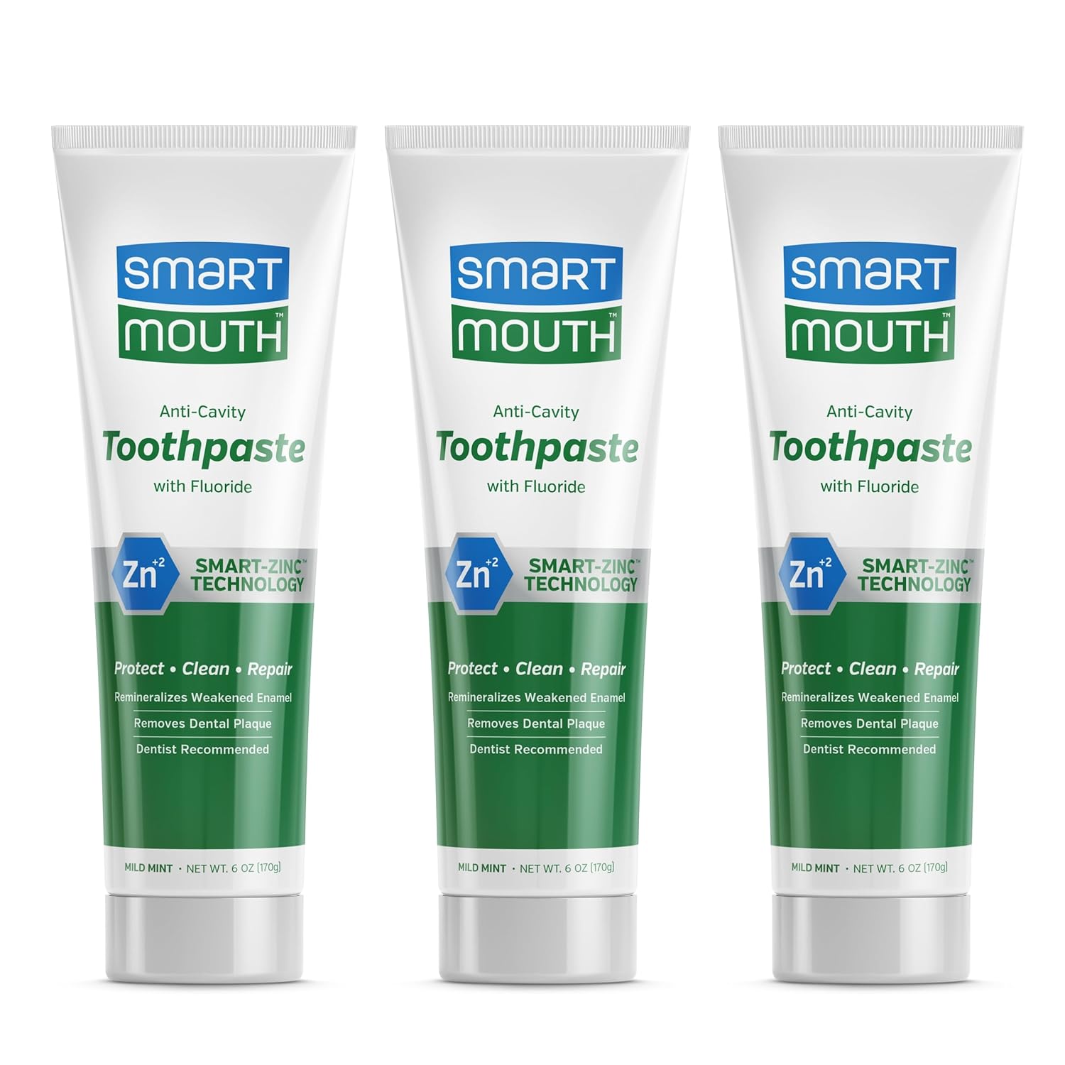 SmartMouth Toothpaste, Refreshing Mint, 6-Ounce Tube (Pack of 3)