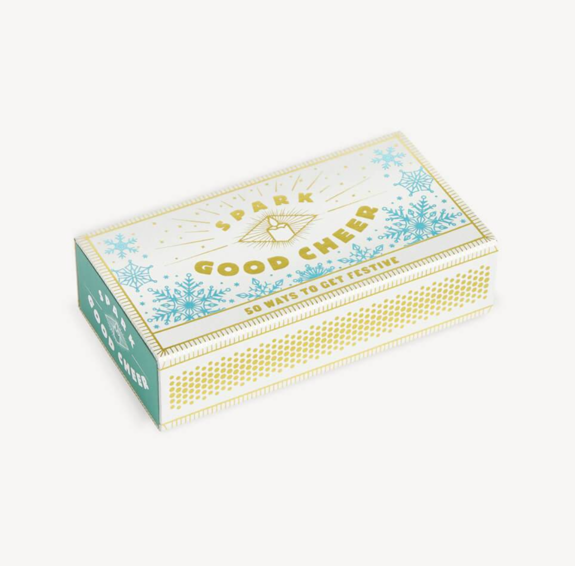 This is a gift that will make spirits bright. Inside the gilded matchbox are 50 faux matchsticks featuring prompts to light up your days with joy, love, and peace.