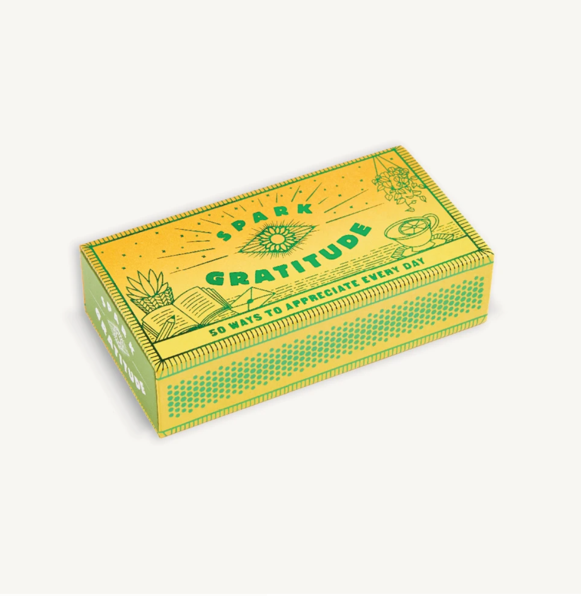 This shimmering matchbox contains 50 faux matchsticks with prompts for appreciating your surroundings, expressing thanks, and giving back. ItÆs a unique way to light up the everyday.